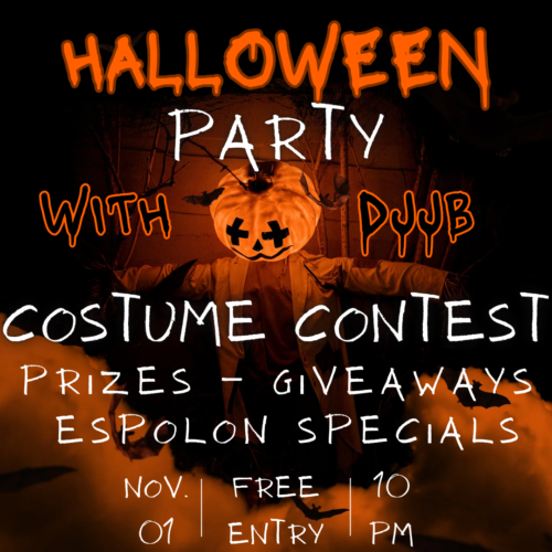 Join us and DJJB on Saturday, November 1st for our Annual Halloween Party! Prizes, giveaways & Espolon specials